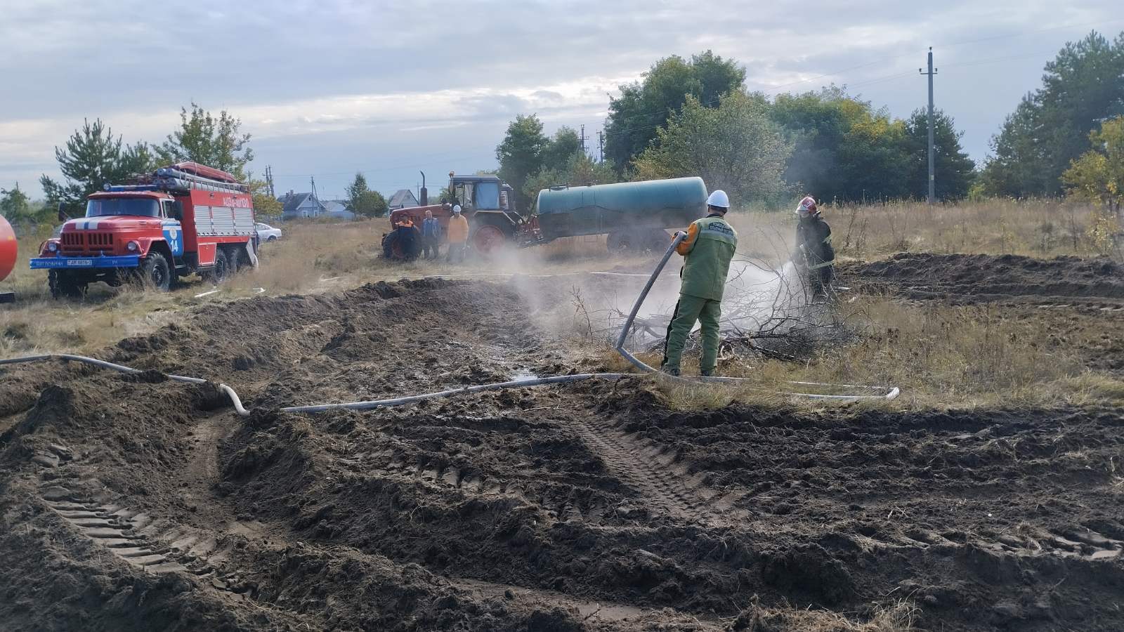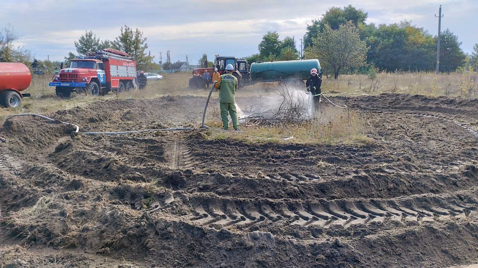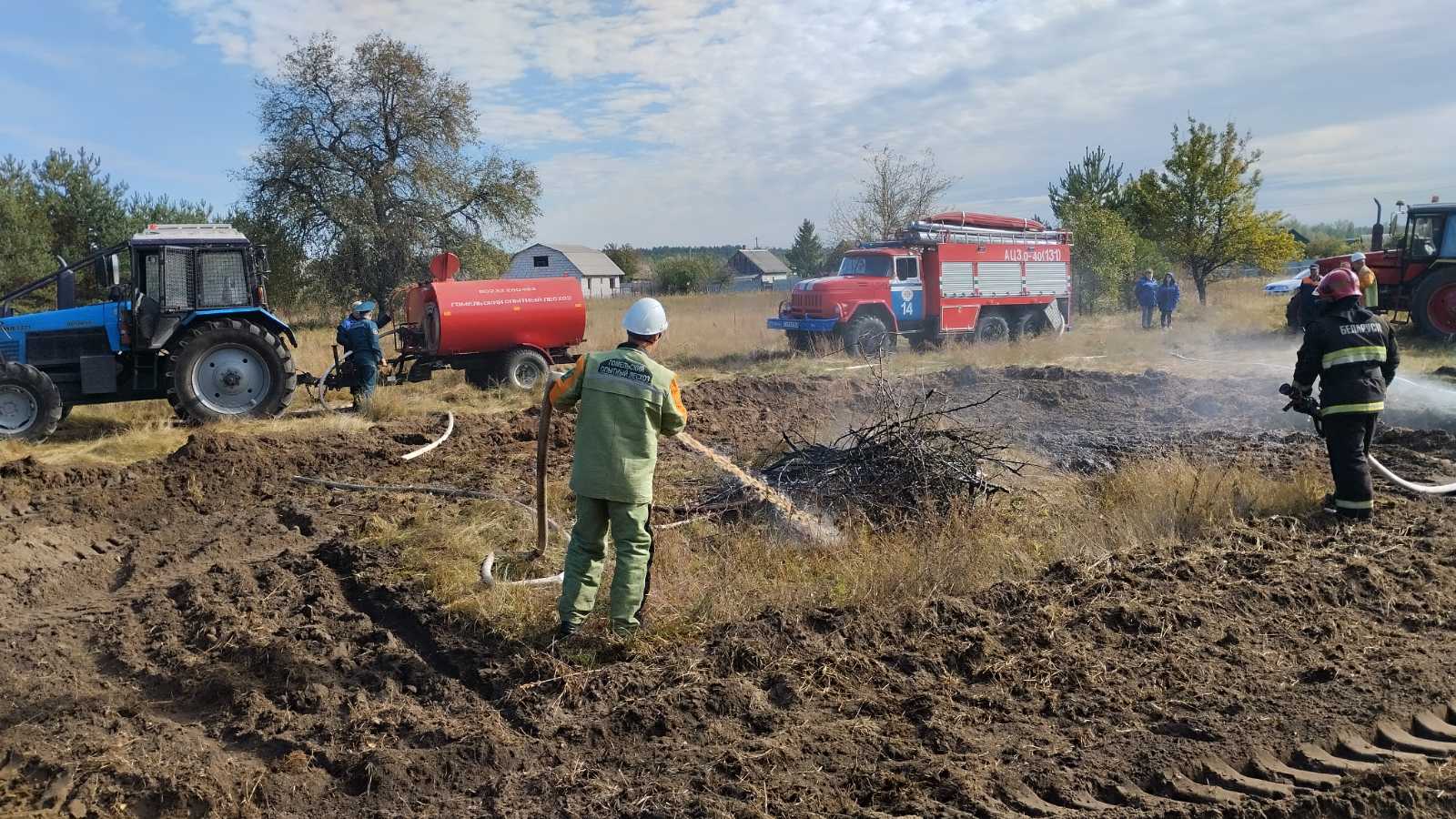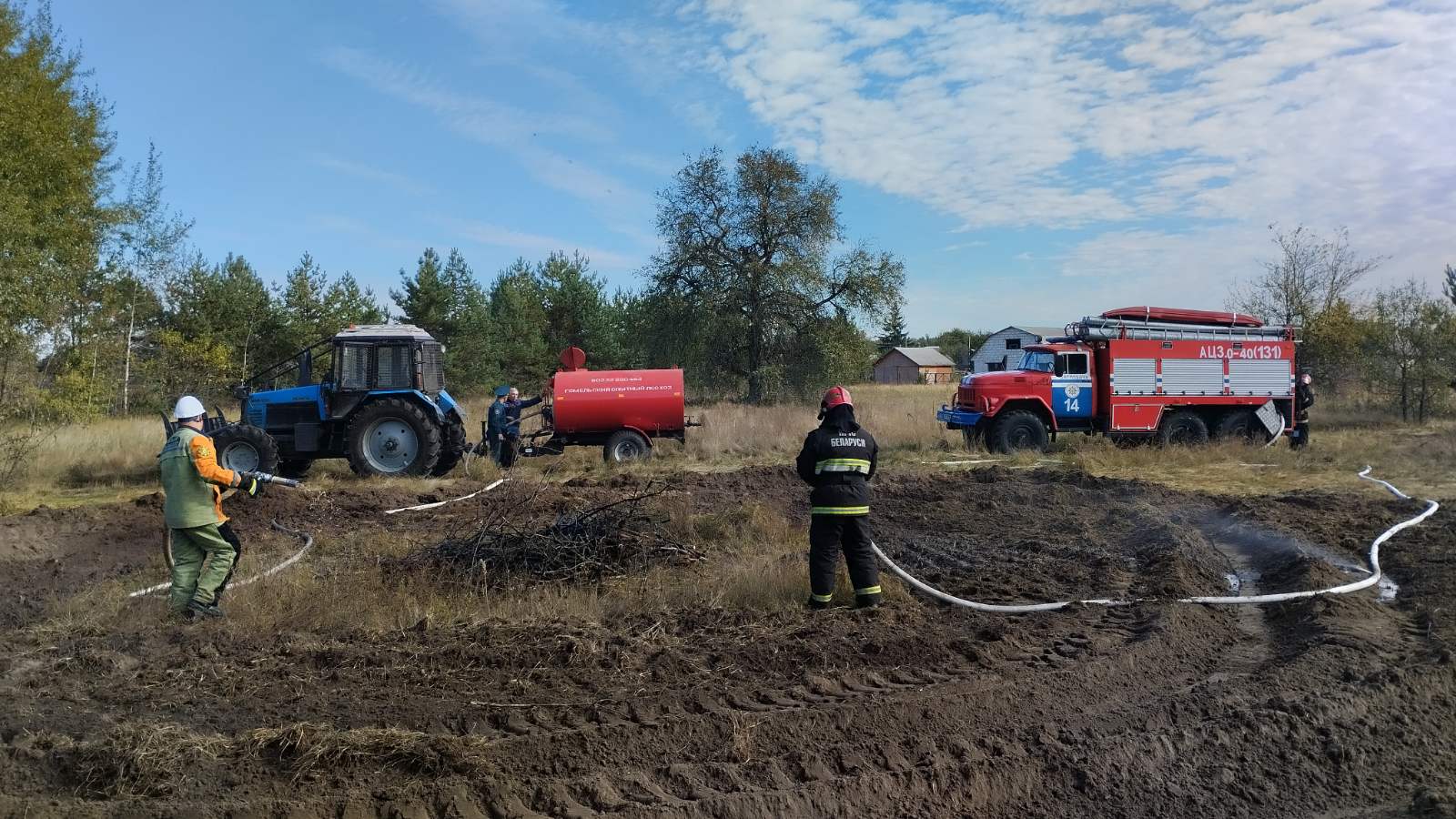 В рамках плана проведения комплексного учения с Гомельским районным звеном Гомельской территориальной подсистемы ГСЧС отработано тушение пожара возникшего на землях предприятия ОАО «Гомельская птицефабрика» с переходом в лесной массив и сторону н.п. Чкалово.